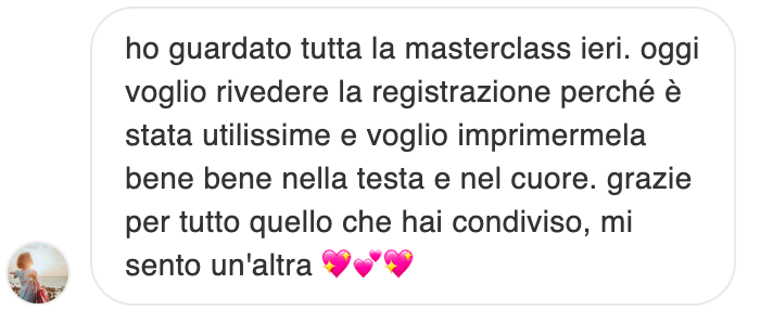 Una volta compilato il form riceverai un’email di benvenuto con le indicazioni per la masterclass. Poi, 15 minuti prima di iniziare, ti arriverà un’altra email con il link per accedere.