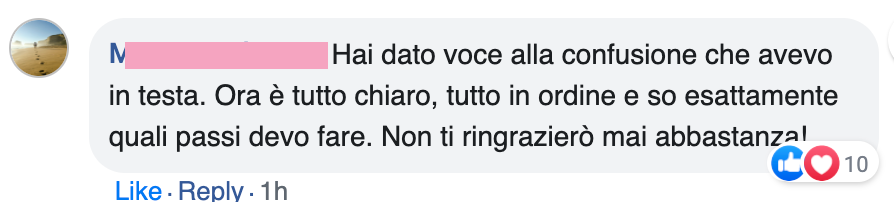 Vedremo qual è la parte mancante in tutto quello che hai fatto fino a oggi. Andremo a fondo nel blocco che hai ma che non sai di avere.